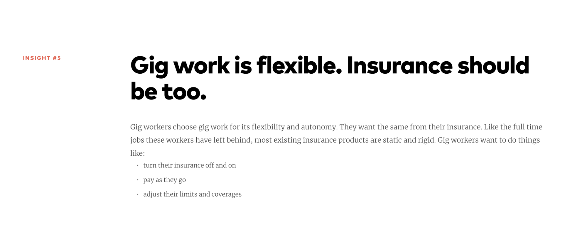Bringing together insights from a series of research studies around gig economy workers and insurance, this case study showcases the end-to-end innovation process that resulted in a new insurance product concept for gig economy workers.