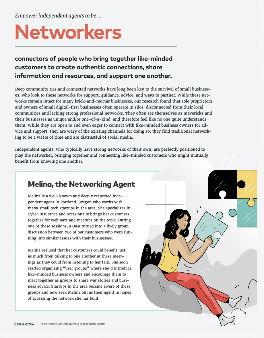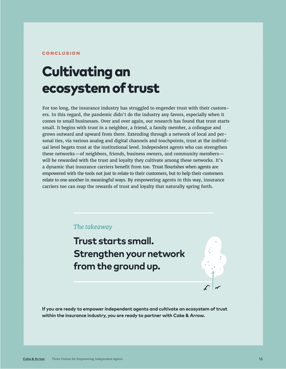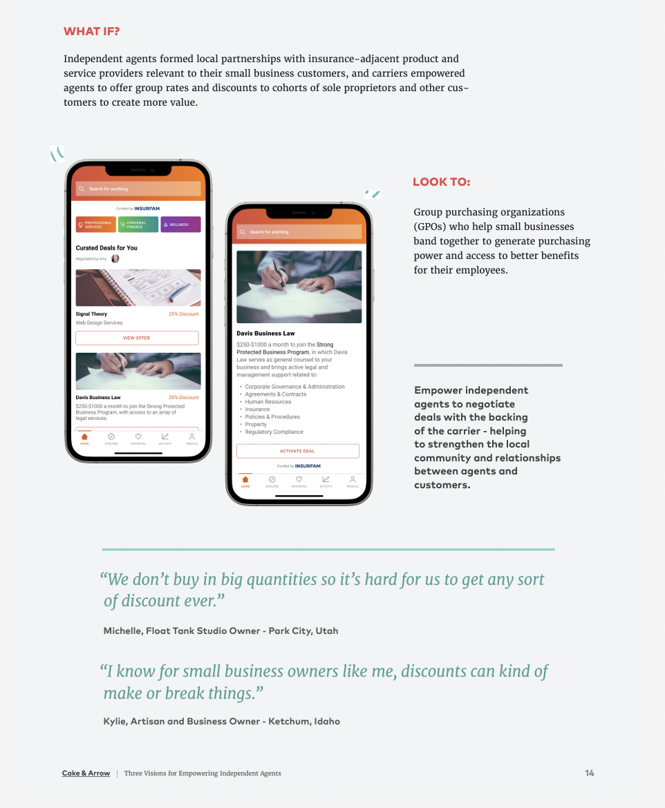 Building on research we had conducted with small business owners and ongoing work designing portals and systems for independent agents, this report was intended to help the insurance industry reimagine the agent-broker paradigm for the modern age to serve small business owners better as they sought to rebuild their businesses after Covid.
