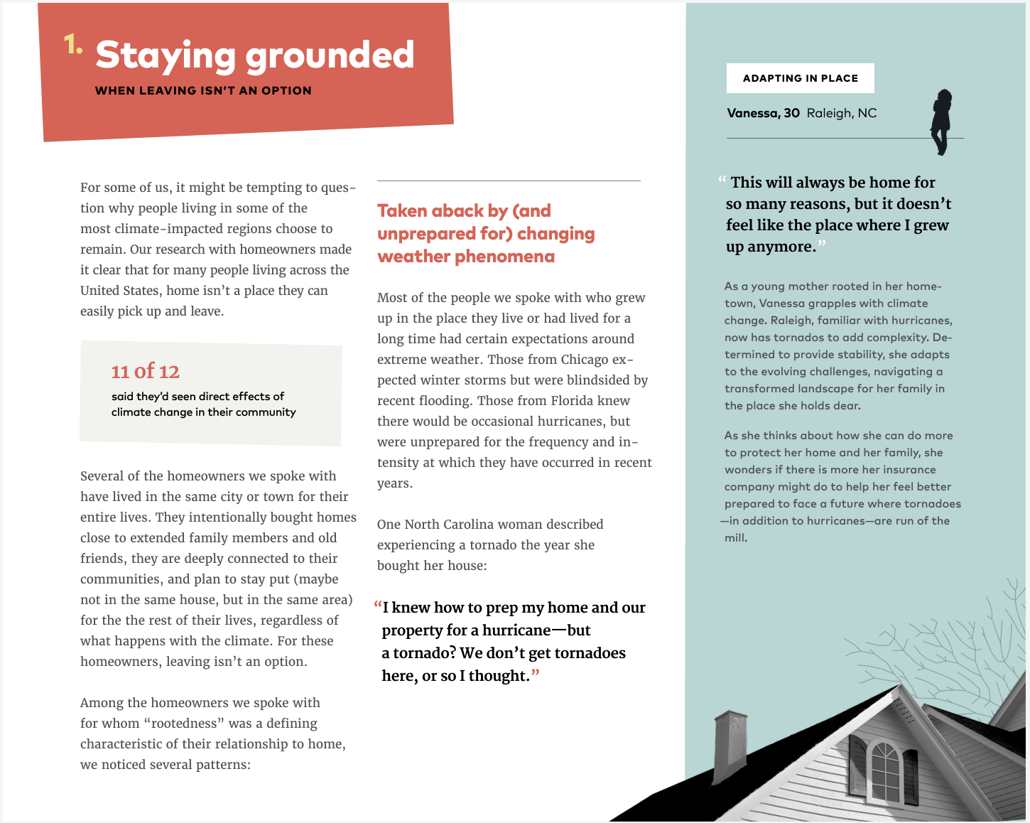 This report was designed to gain insight into how the experience of homeownership across America is being impacted by climate change, with a specific focus on how homeowners think about insurance in relation to increased climate-related risk. The goal was to be able to offer insurance carriers not only deeper insights into customer mindsets around climate change and insurance but also tangible opportunities for how they can better support homeowners under new climate conditions.